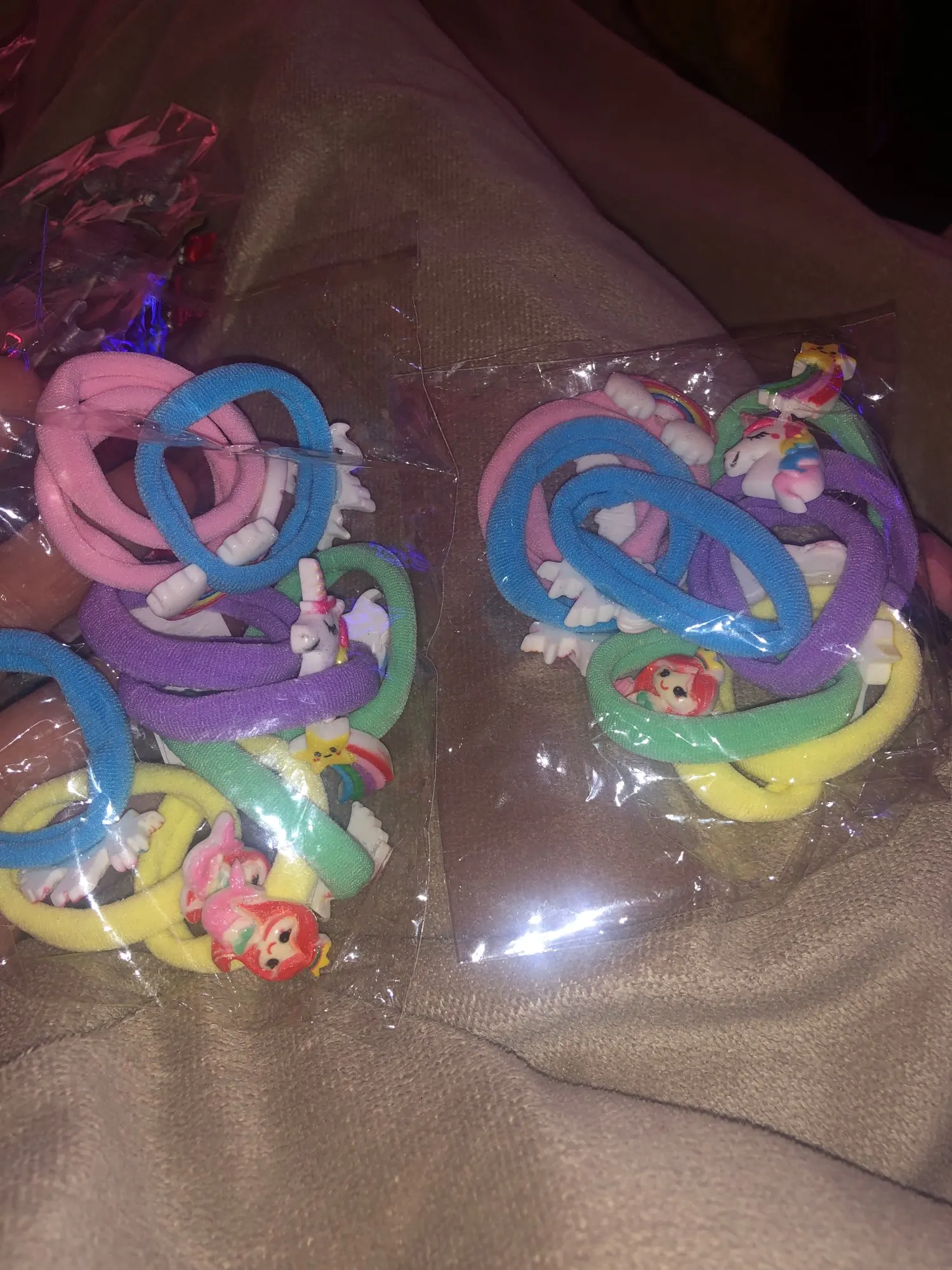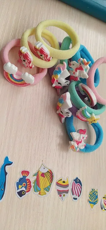 Резинки очень мягенькие, приятные на ощупь, не рвут волосики, но большие по размеру не для маленьких волос. Дочка в восторге от единорожков и принцессы. Посылка шла больше месяца. С продавцом не общались.