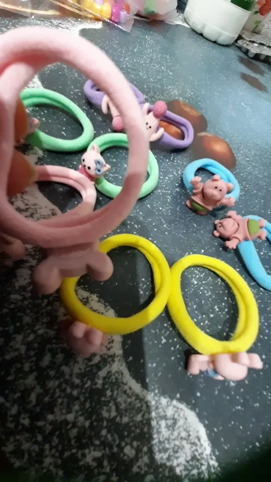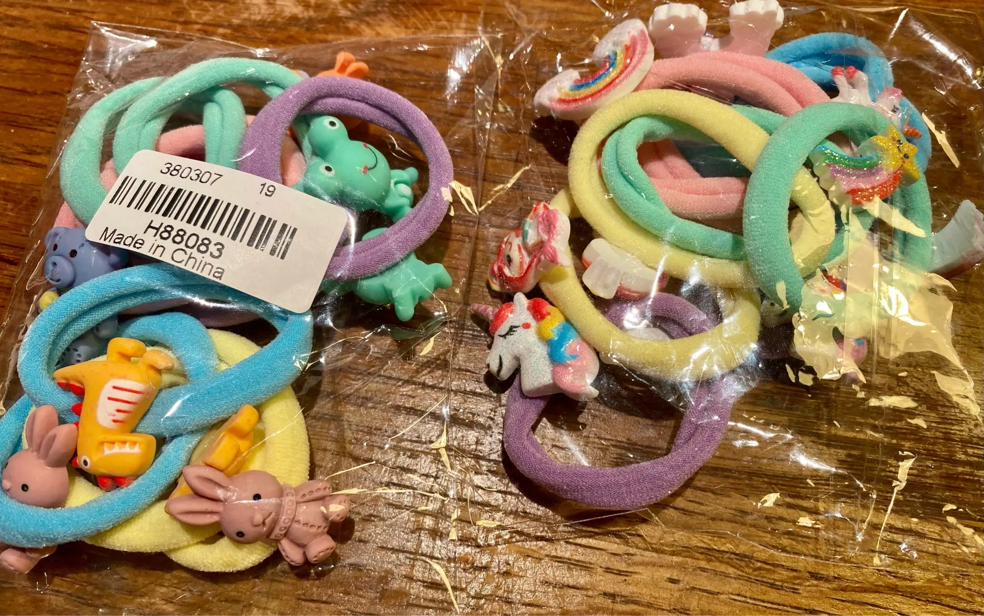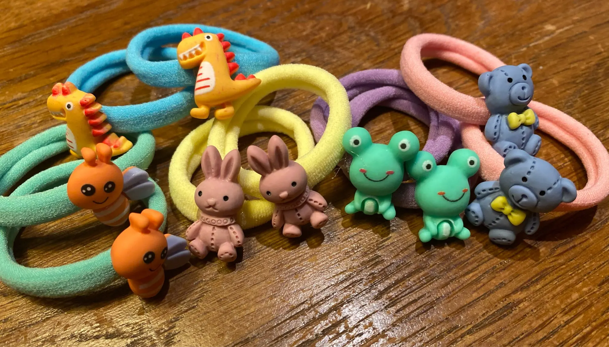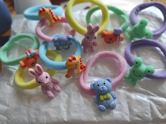Зверюшки прикольные, приклеены к резинкам силиконовым клеем, клей виден, при небольшом подергивании не отлетают. Резинки средние по размеру, тянутся хорошо, эластичные. Доставка до Москвы больше месяца. В фикспрайсе 2 такие зверюшки на тонких резинка 55р стоят