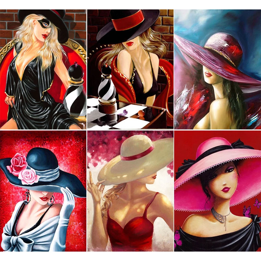 Алмазная 5D Вышивка сделай сам, Элегантная Дамская верхняя шляпа, а...