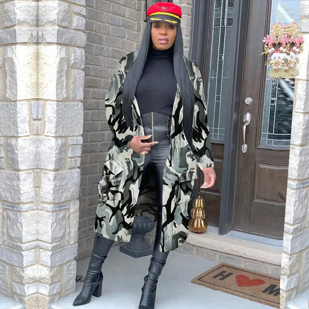Женская камуфляжная куртка, кардиган оверсайз в стиле милитари с карманами, Повседневная Уличная одежда, размера плюс
