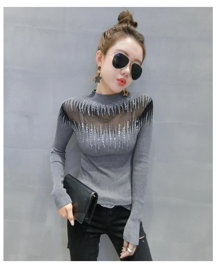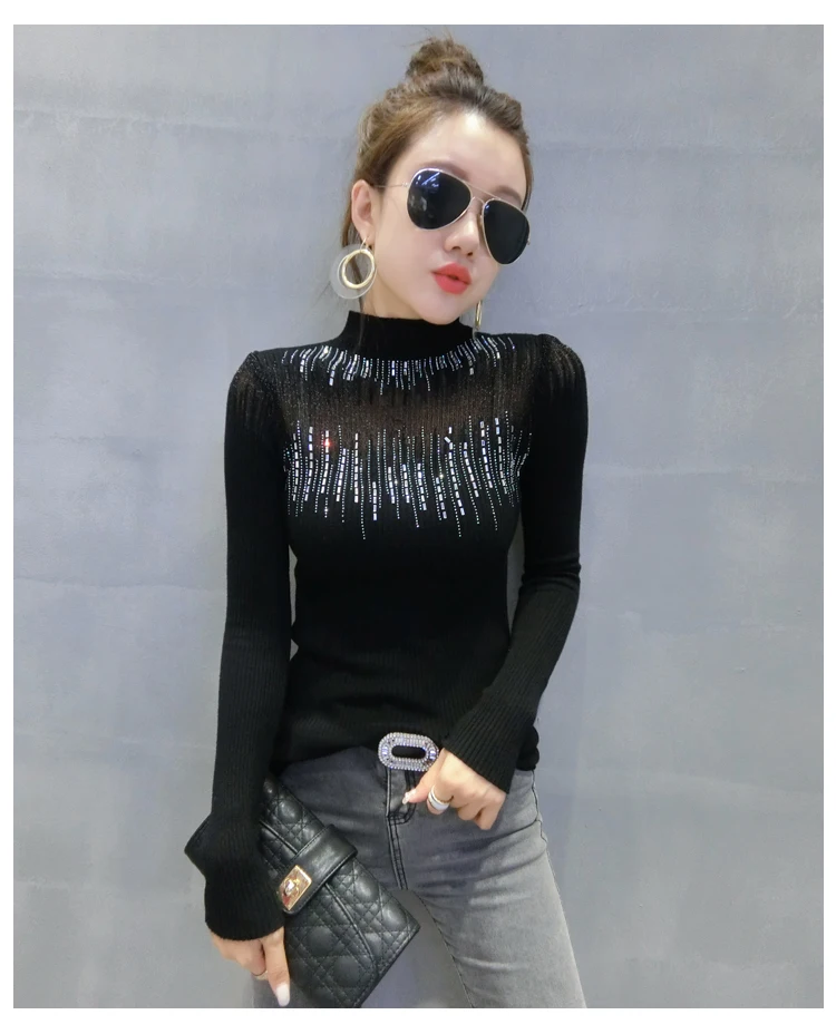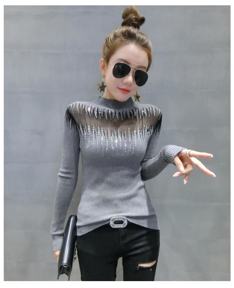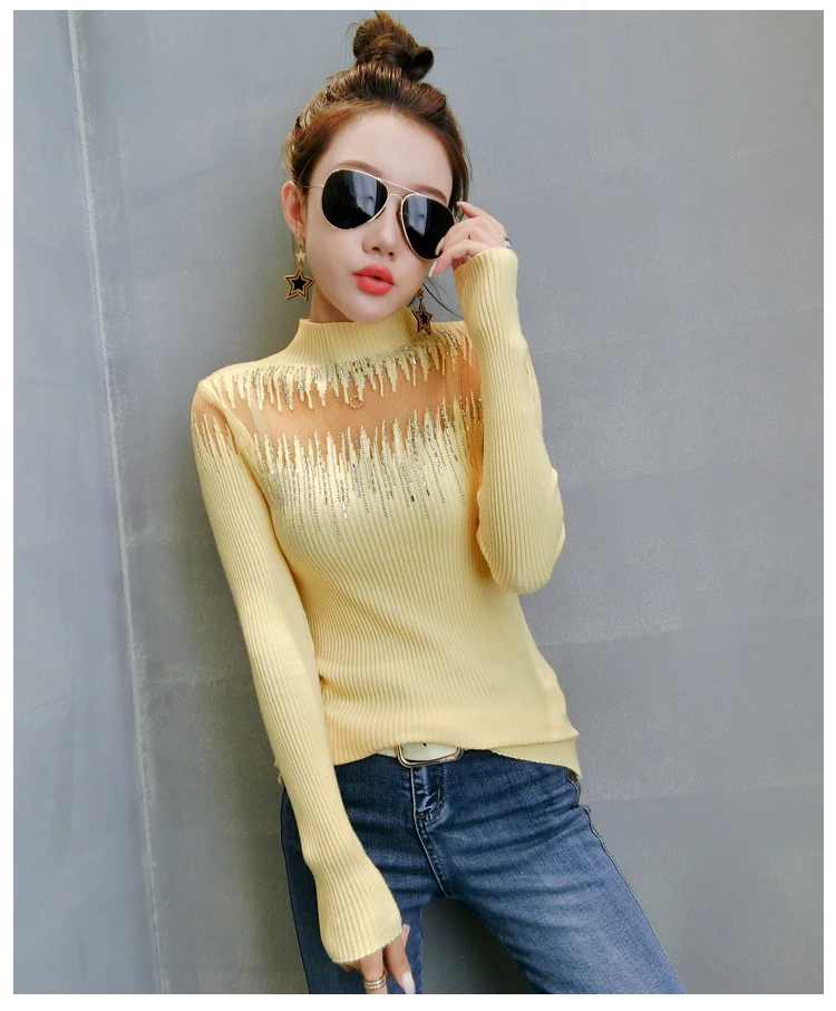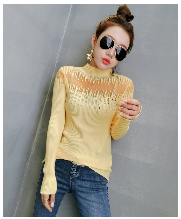 Модный свитер с высоким воротником, Женская привлекательная яркая рубашка с длинным рукавом и вырезами, свитер, пуловер, осенние свитера 2022, 11243