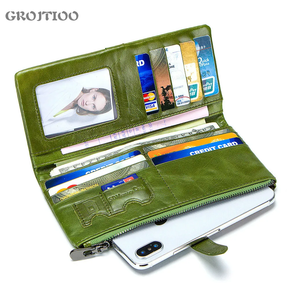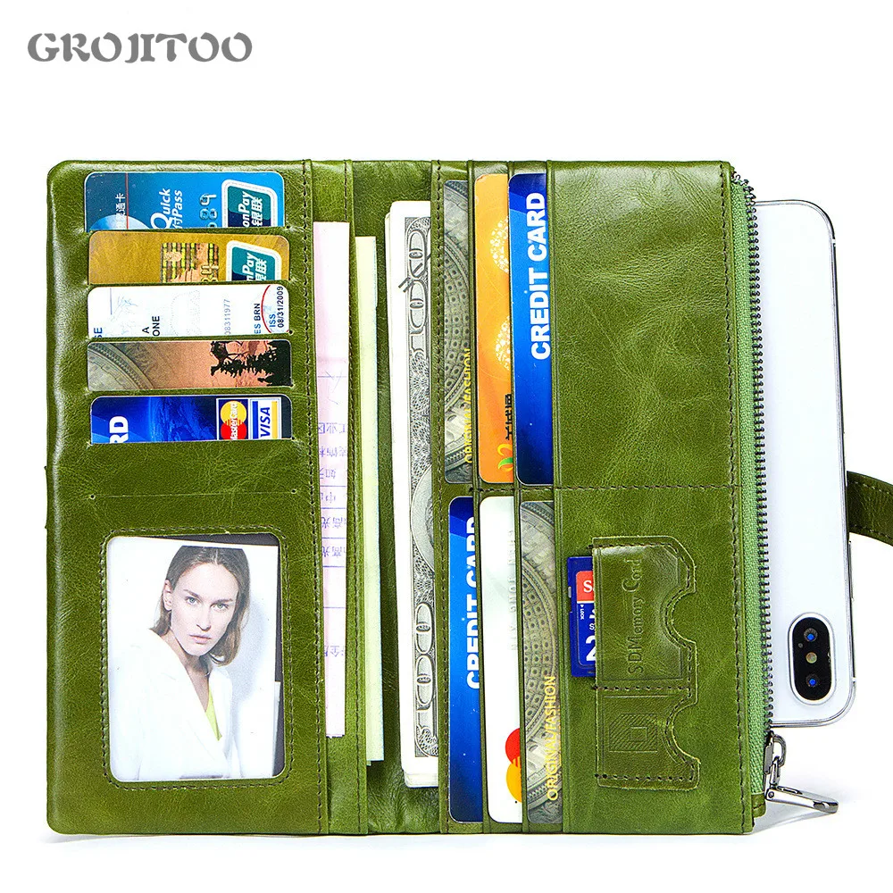 Женский кошелек из 100% натуральной кожи GROJITOO, кошелек для кредитных карт, женская сумочка для нескольких карт, кошелек из воловьей кожи, карманная сумка для телефона