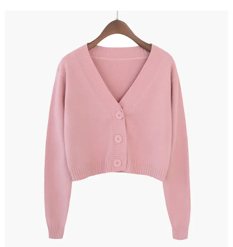 Вязаный Укороченный кардиган, женский короткий свитер в Корейском стиле с длинным рукавом и V-образным вырезом, зеленый, синий