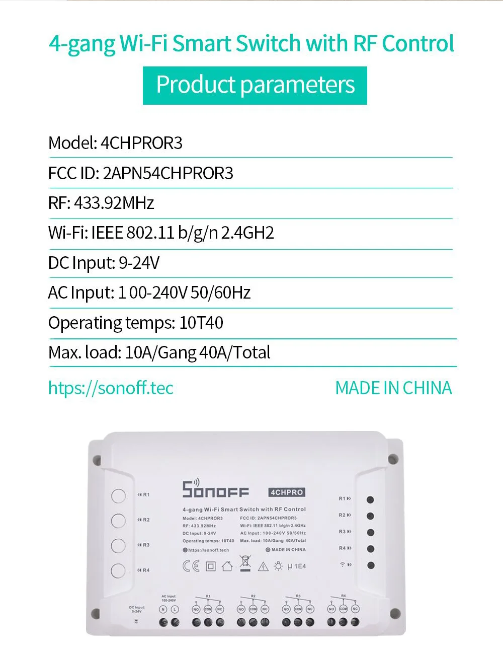 Sonoff 4CH PRO R3 Wi-Fi выключатель света 4CHR3 4 Gang DIY умный дом SONOFF 4CH R3 Беспроводной Wi-Fi переключатель RF 433 МГц контроллер