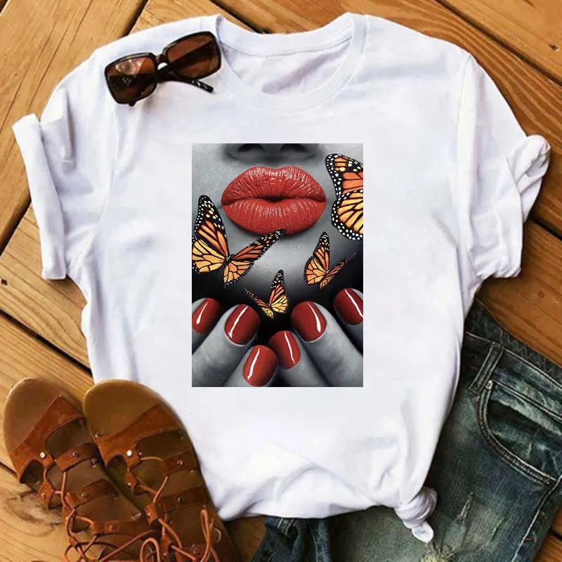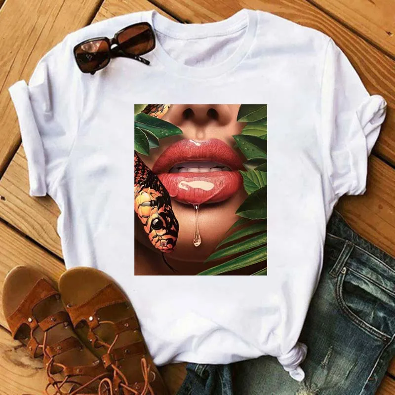 Женская футболка Maycaur, новые сексуальные губы, модная футболка с графическим принтом, в стиле Харадзюку 90-х, в стиле улззанг, с розами, змеей и губами, повседневные топы, футболка