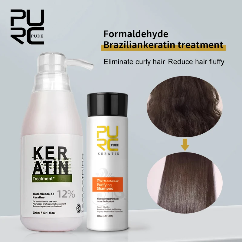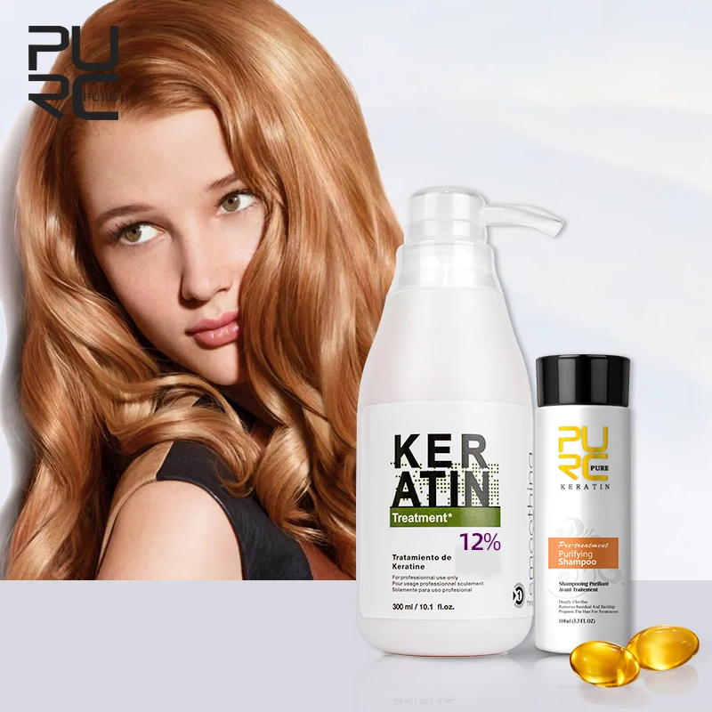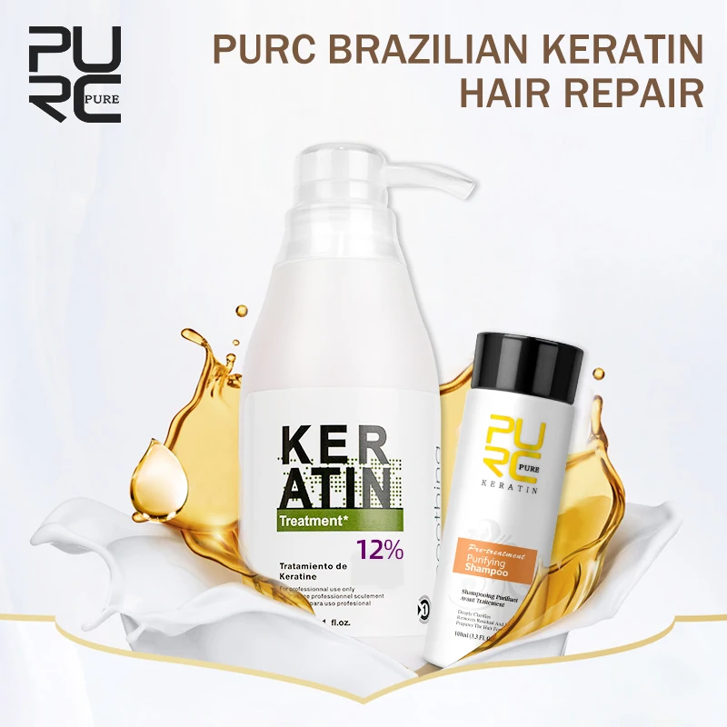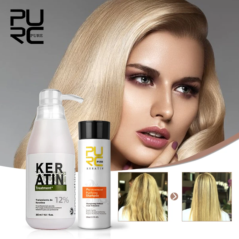 Новый PURC Бразильский кератин 12% Формалин 300 мл Кератиновое лечение и очищающий шампунь 100 мл выпрямление волос Набор для лечения волос