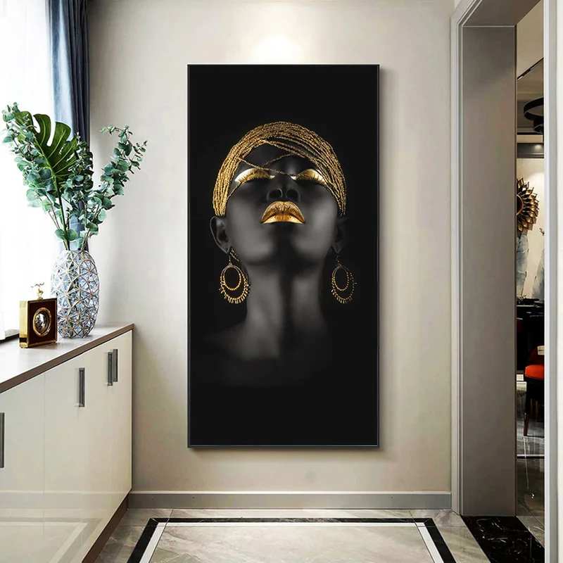 Черное лицо женщины с золотом плакат на холсте с жидкостью большой ...