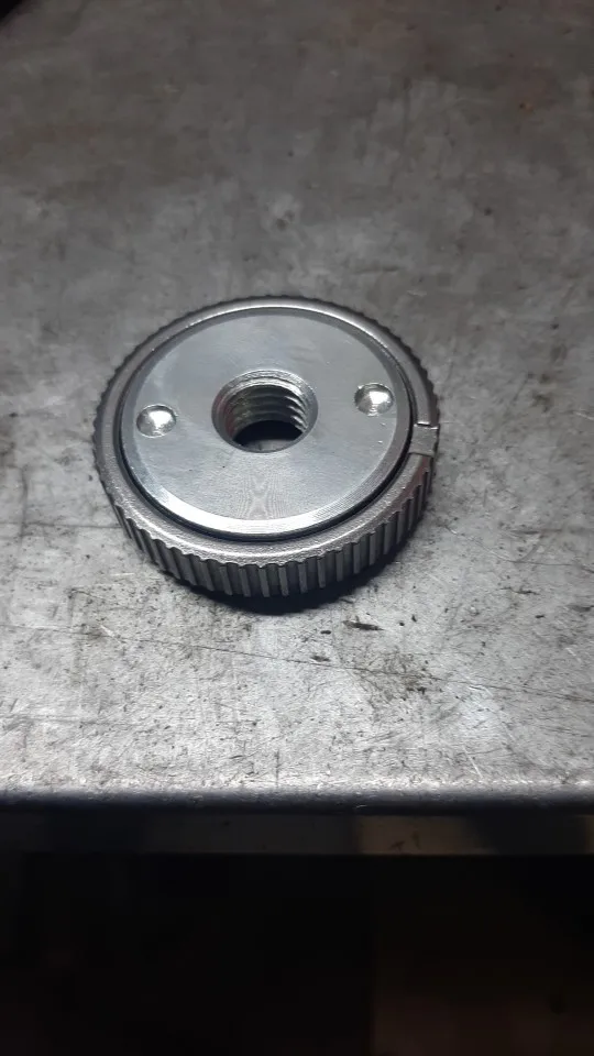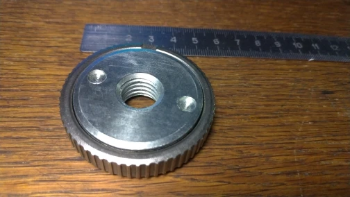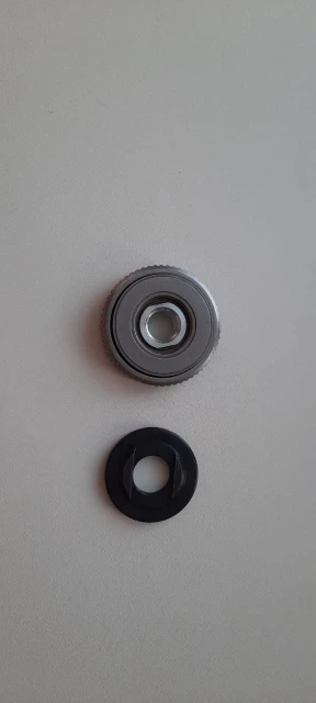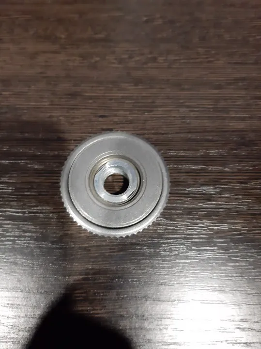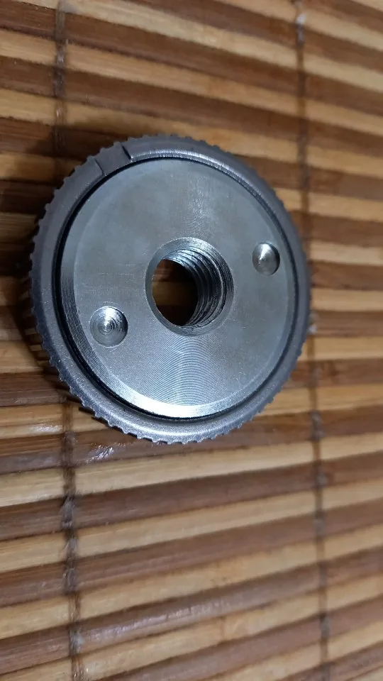 самозажимая гайка очень высокого качества, на профессиональную ушм бош встала как родная. зажимная гайка, не очень точно рассверлено посадочные отверстие. немного люфтит. оставил на обоих ушм родные бошевские.