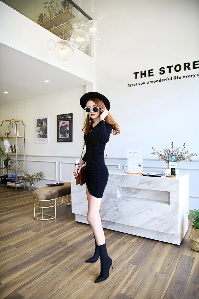 Женские сапоги до середины икры, эластичные сапоги на высоком каблуке, новинка сексуальный носок года, осенне-зимние сапоги, женские туфли-лодочки на шпильке, 41