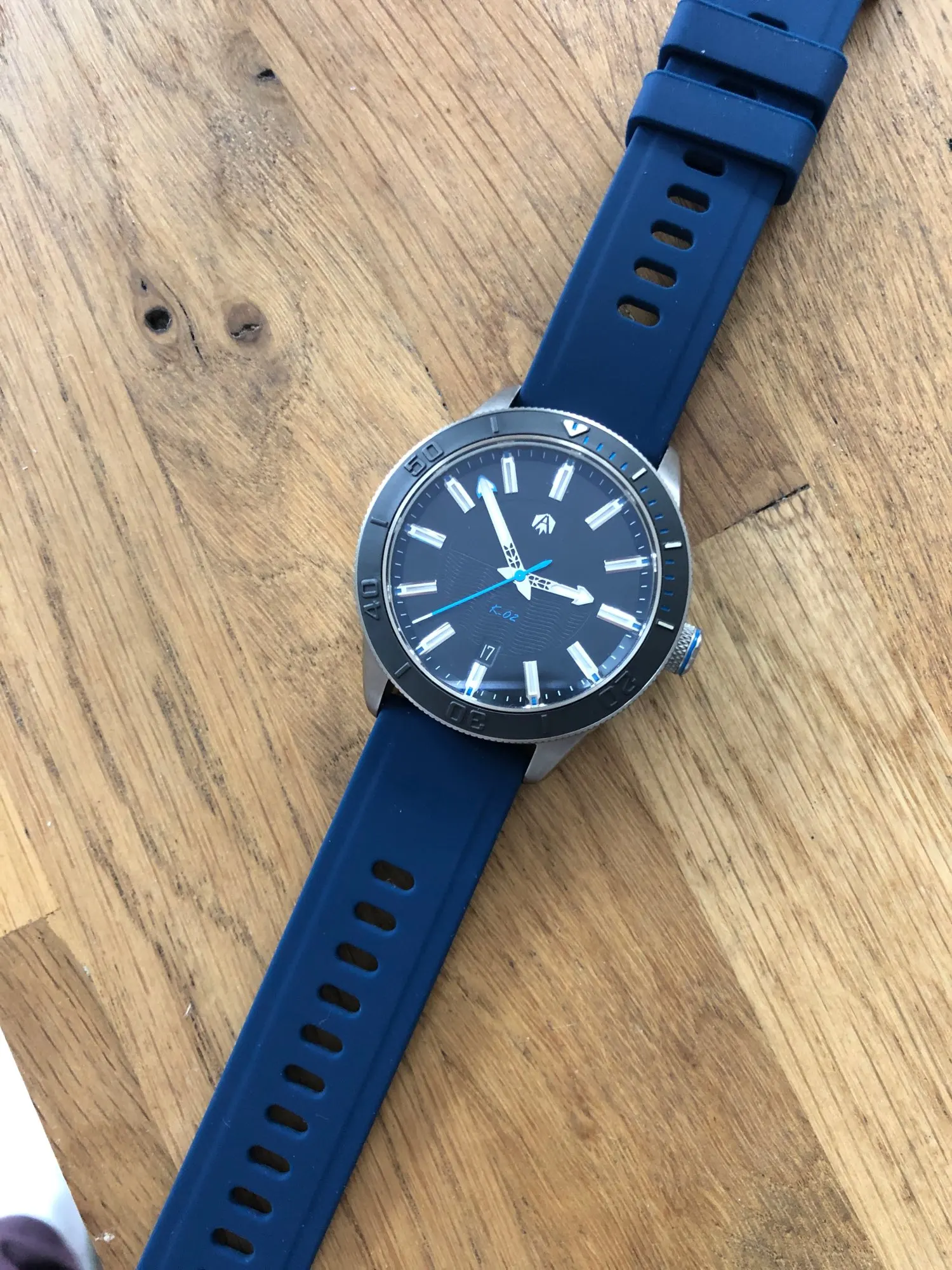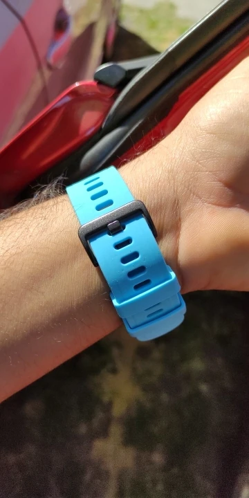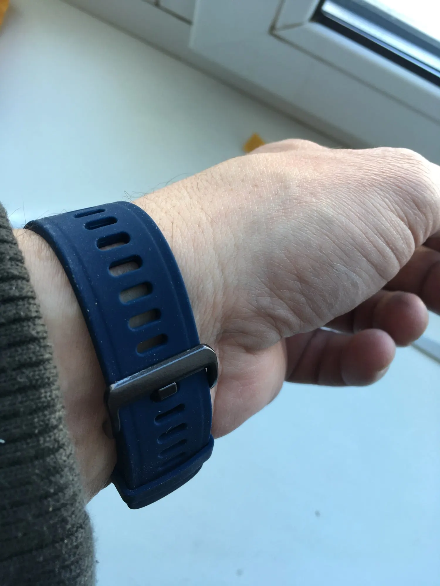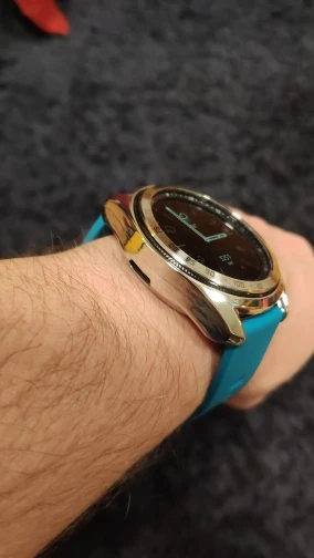 Ремешок суперобалденного качества!Материал очень приятный на ощупь и мягкий.Руке очень комфортно, не потеет.Цвет красивый тёмно синий-великолепен.Удобнейшая застёжка.Ремешок намного лучше родного GTR.Однозначно рекомендую.Он лучше чёрного такого же.