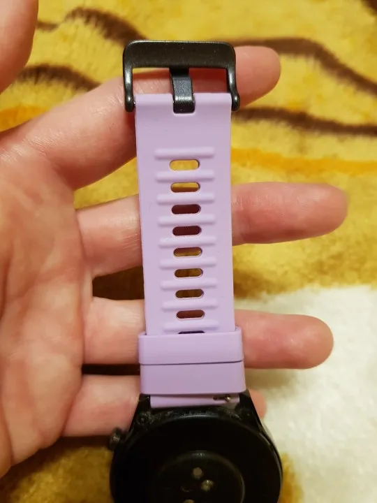Хороший ремешок, приятный сиреневый цвет, мягкий. Много прорезей - на любую толщину руки и рука дышит. Продавец отправил товар на следующий день, но доставка составила 7 недель. Отслеживалось. Посылку бросили в почтовый ящик. К покупке ремешок рекомендую.