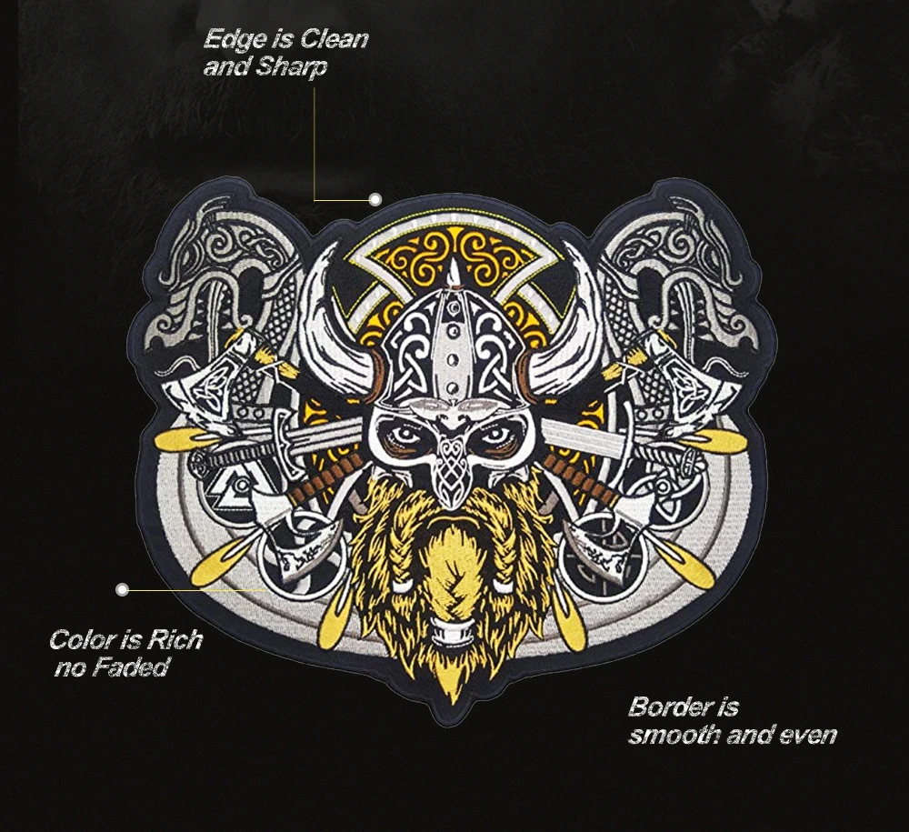 Размер: около 26 см (Ш) Цвет: как на фото Стиль: приклеить/пришить Название продукта: вышитая нашивка с изображением бога войны викингов Одина Посылка: патчи 1 шт. Черная саржевая ткань с утюгом на подложке и 75% НАБ