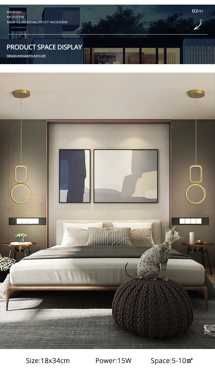 Новый современный светодиодный подвесной светильник для спальни, прикроватный светильник для помещений, золотой, черный декоративный светильник, светильник AC85-260V