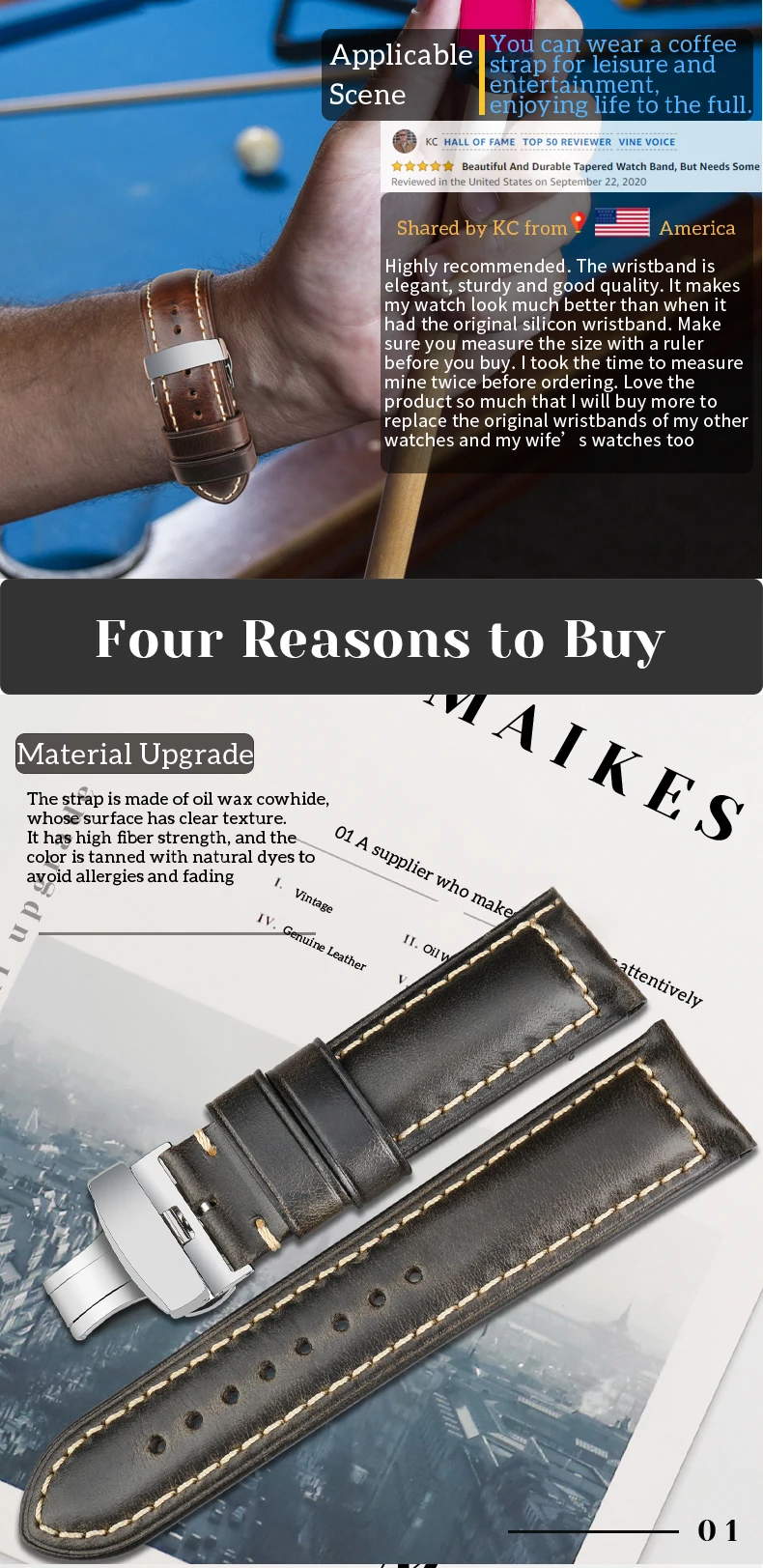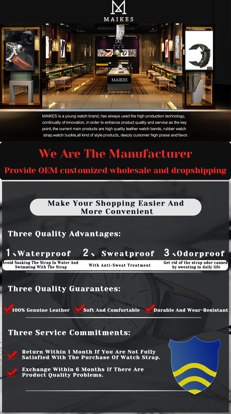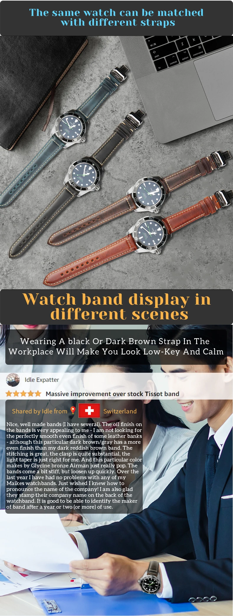 Ремешок Maikes из натуральной телячьей кожи, роскошный сменный Браслет для наручных часов, с пряжкой-бабочкой, 18 мм 20 мм 22 мм 24 мм