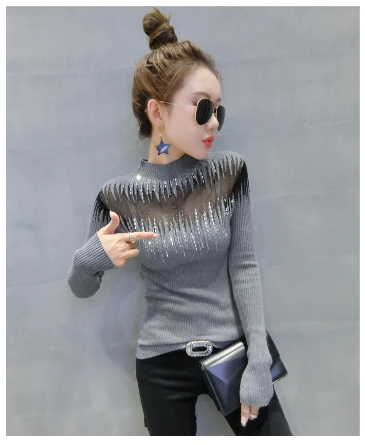 Модный свитер с высоким воротником, Женская привлекательная яркая р...