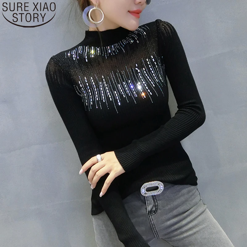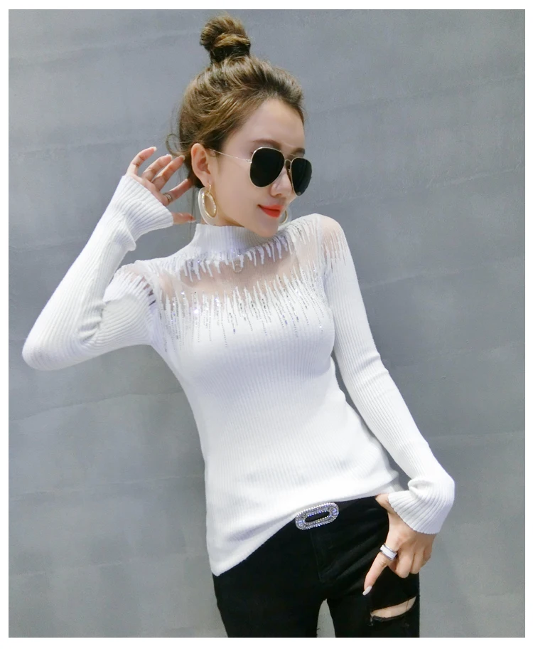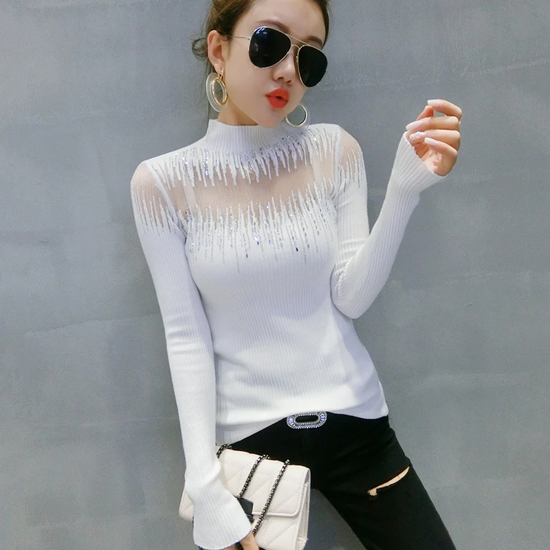 Женский трикотажный свитер-водолазка, яркий пуловер с длинным рукавом, осень 2022