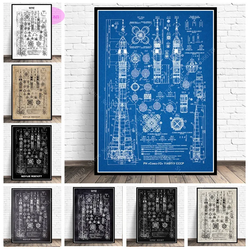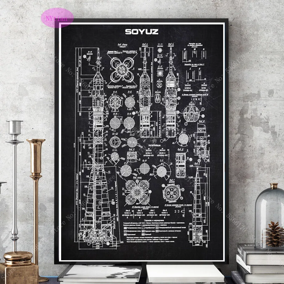 NT1103 популярная схема карта космоса Soyuz российский реактивный патент плакат печать настенная живопись картина холст гостиная домашний декор