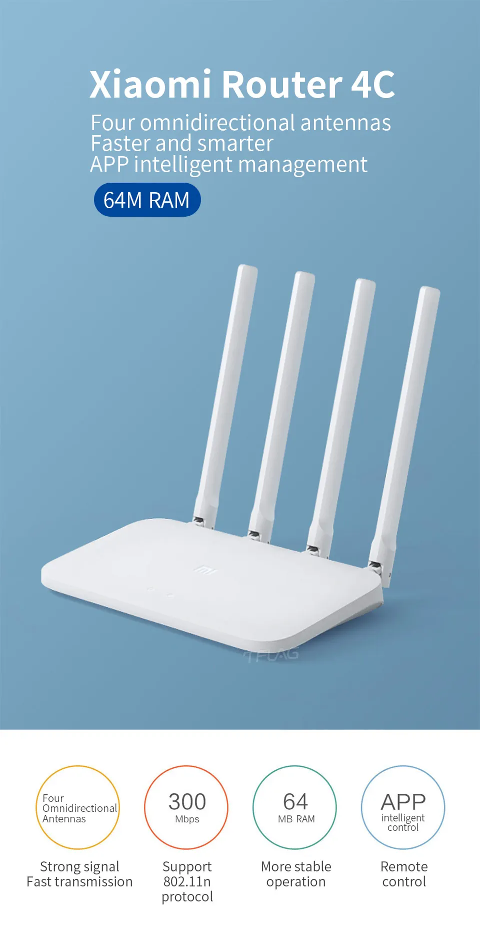 -4 антенны с высоким коэффициентом усиления-64 Мб оперативной памяти-Интеллектуальное управление через приложение-скорость беспроводной связи 300 Мбит/с