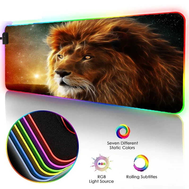 Игровой коврик для мыши XGZ, с изображением Льва, RGB, со светодиодной подсветкой, беспроводной зарядный коврик для мыши