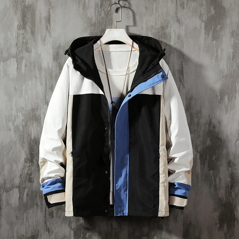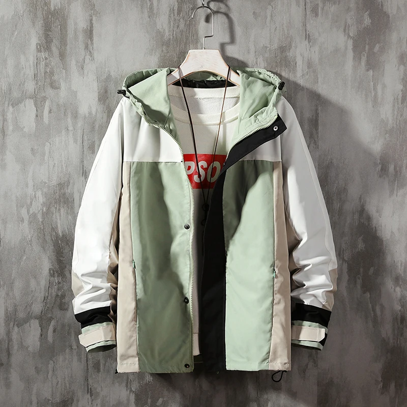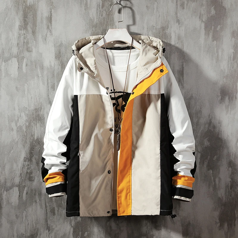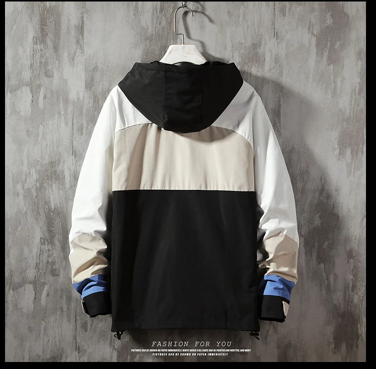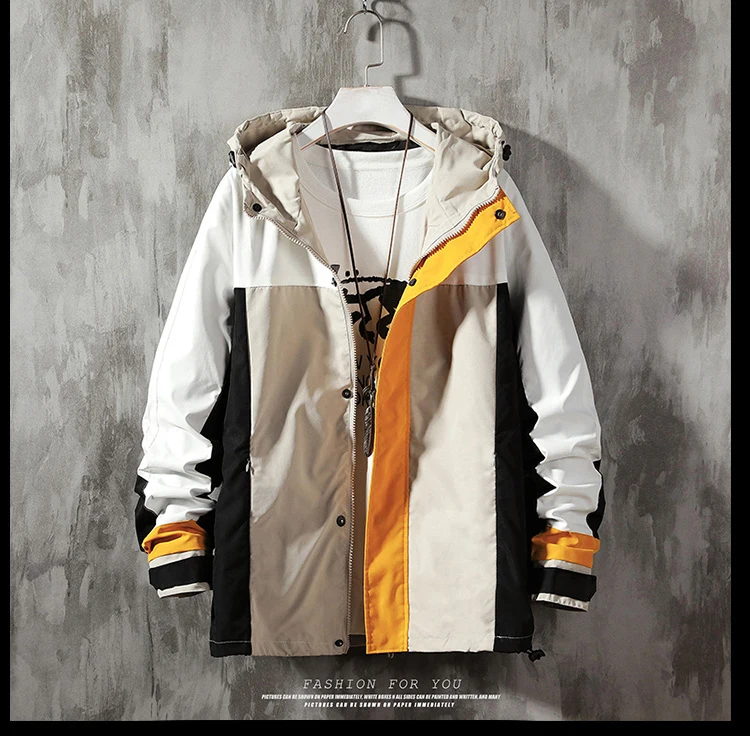 Куртка мужская с капюшоном в стиле хип-хоп, пэчворк, свободная спортивная куртка на молнии, с надписью в стиле Харадзюку, корейское спортивное пальто, 2020