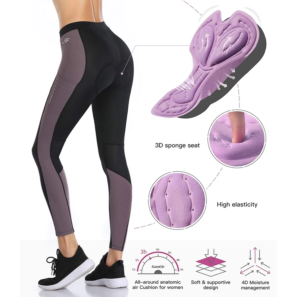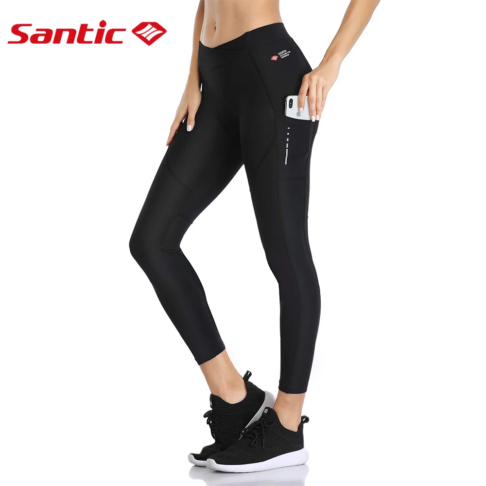Женские велосипедные длинные штаны Santic, леггинсы с 3D подкладкой, дышащие сетчатые светоотражающие велосипед MTB, велосипедные леггинсы, спортивные брюки