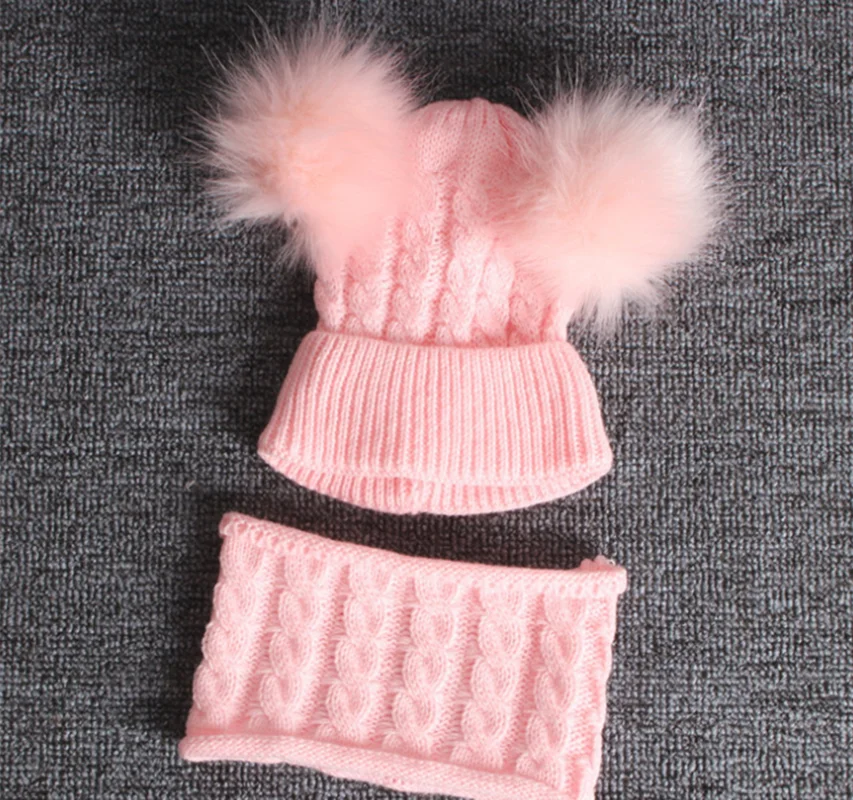 Детская зимняя шапка для маленьких мальчиков и девочек, двойной пушистый мяч, женская мягкая теплая меховая Шапка-бини, вязаные шапки
