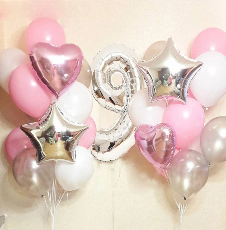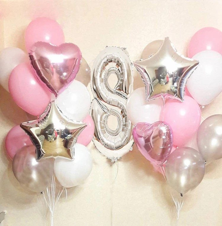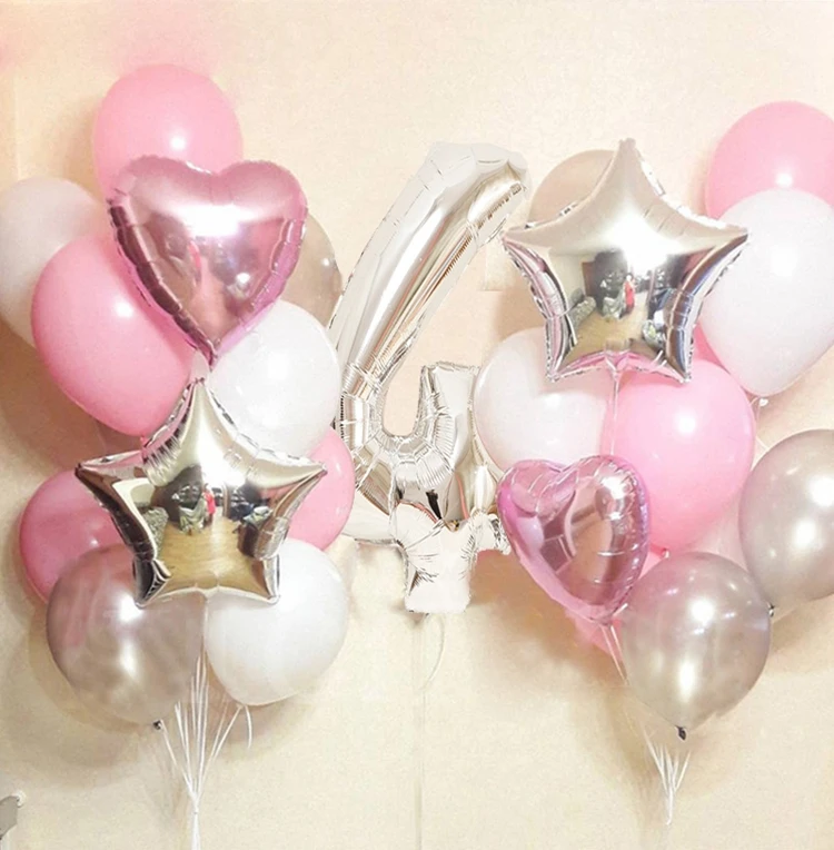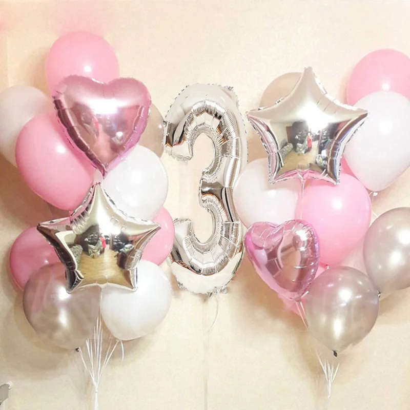 Розовые серебряные цифры фольга, латекс, воздушные шары, принцесса, девочка, украшение для дня рождения, дети, первая фотосессия, 20 шт.