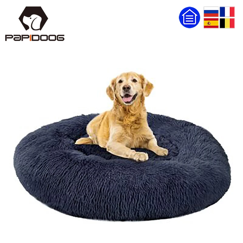 Пушистая Лежанка для собаки, мягкая круглая, длинная плюшевая Лежанка для собаки, моющаяся Лежанка для щенка, кошки, подушка, зимний теплый диван, аксессуары для дома