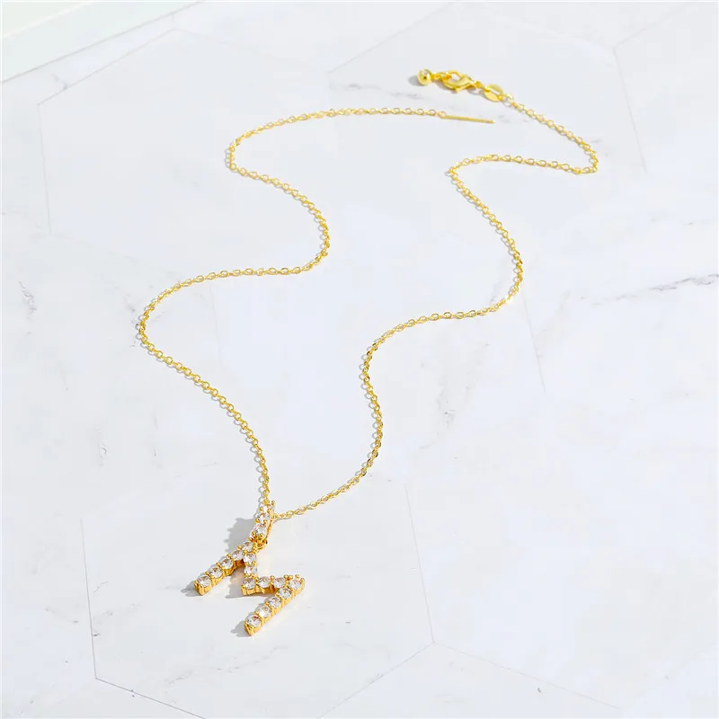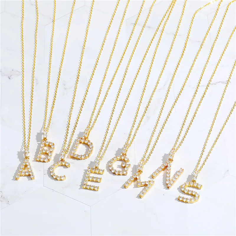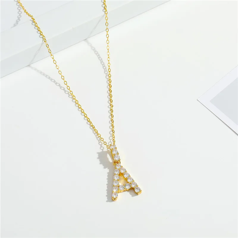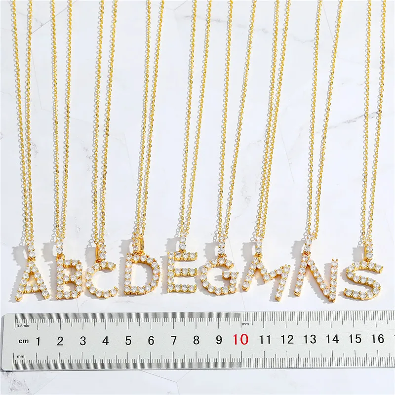1 шт., корейское, шикарное, циркониевое ожерелье с буквенным принтом для женщин, простой, блестящий кристалл, Медный кулон, колье, цепочка для ключицы, 26, первоначальные ювелирные изделия