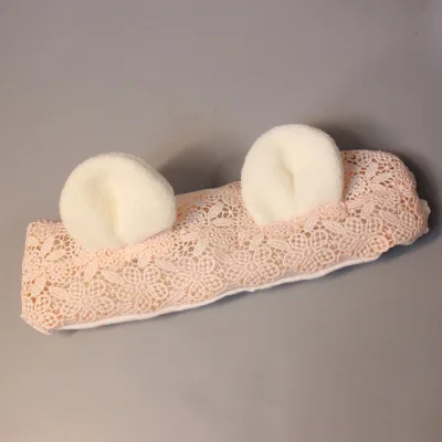 Повязка на голову детская эластичная с кружевным бантом и маленькими ушками