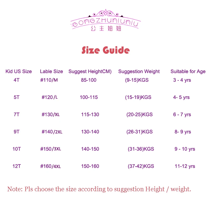 Размер США 9T (размер 140/2XL): рекомендуемый рост 130-140, рекомендуемый вес25-30KGS,