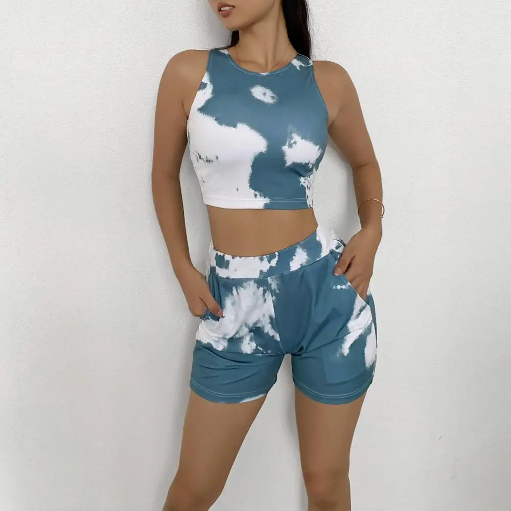 Комплект Спортивный Женский, с мраморным принтом, для занятий йогой, галстук для костюма окрашенный, с высокой талией