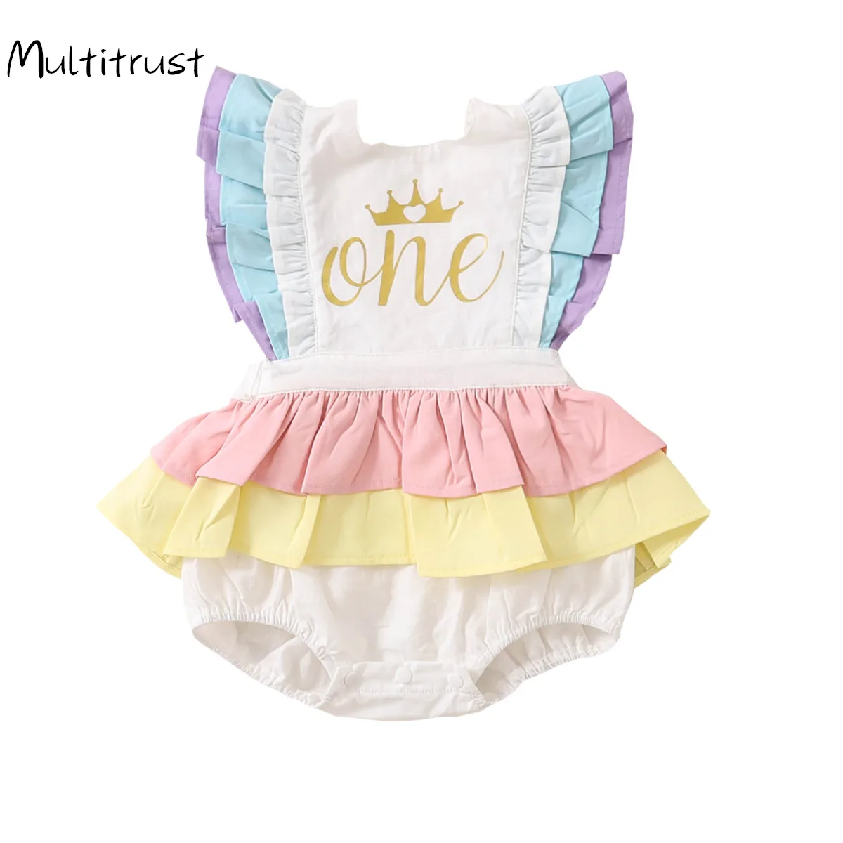 Первый наряд на Рождество для малышей, одежда на первый день рождения для девочек, милое многослойное Боди без рукавов, одежда для маленьких девочек, радужная одежда