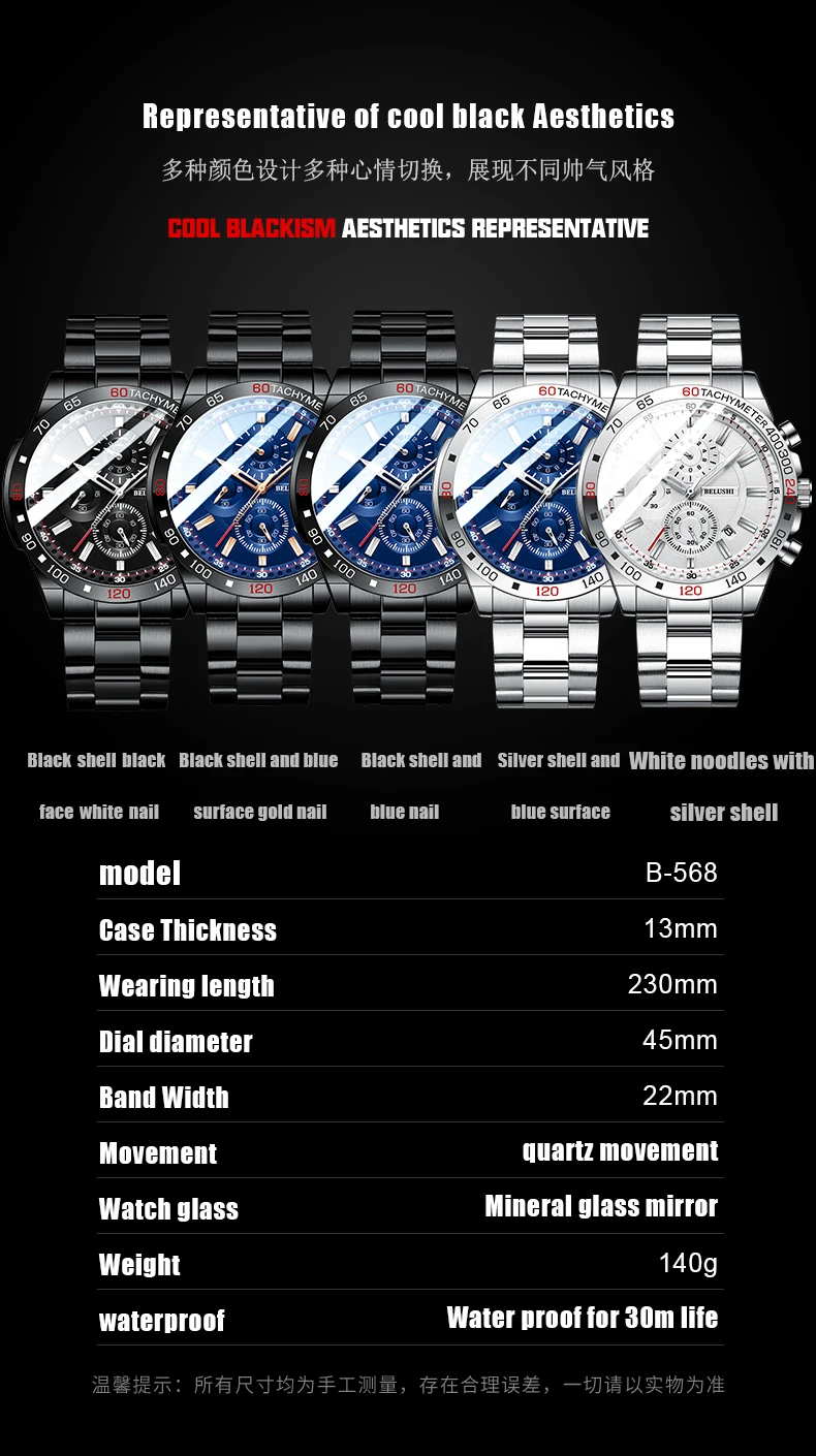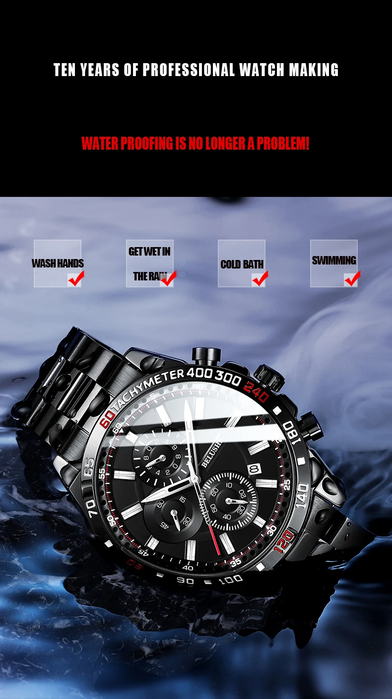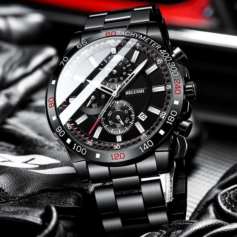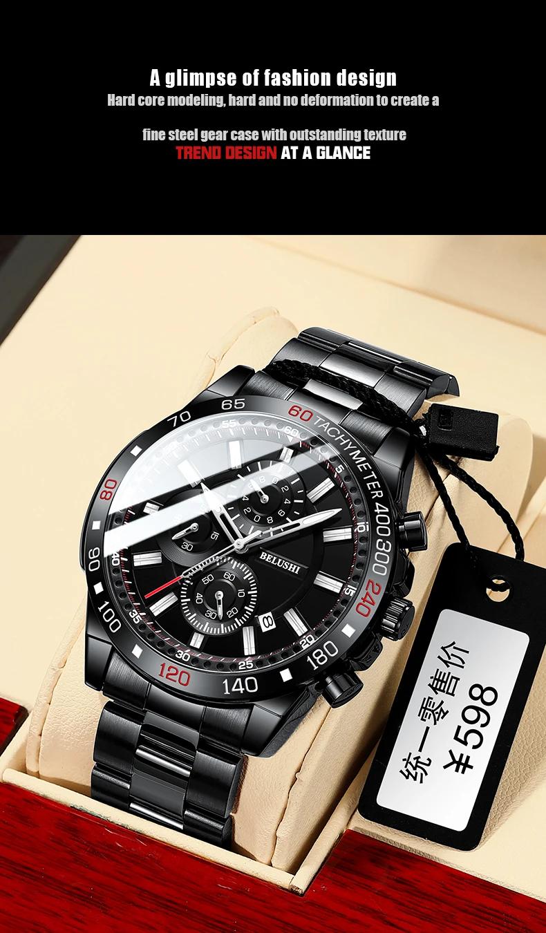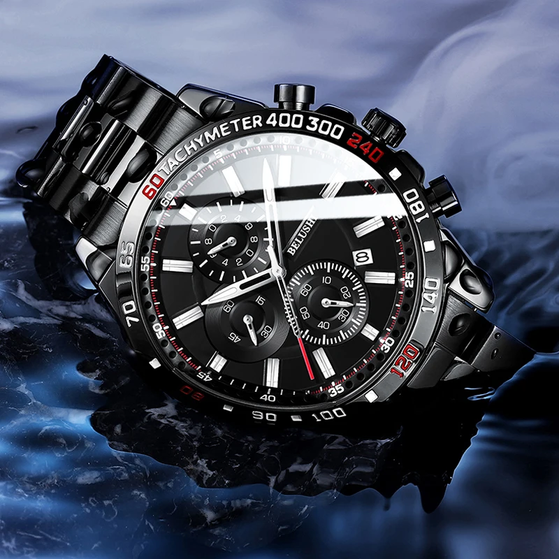 Часы мужские Кварцевые водонепроницаемые из нержавеющей стали с хронографом