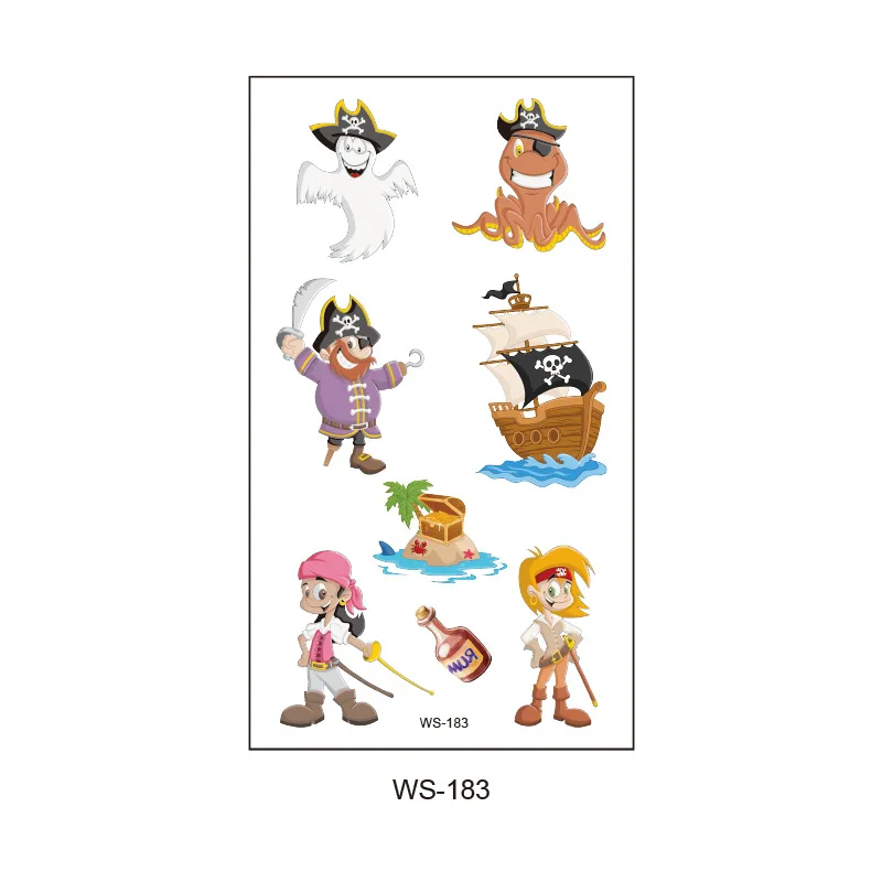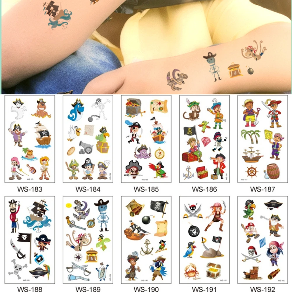 10 видов детских мультяшных пиратских татуировок, временные наклейки на тело, викинги, пиратские одноразовые татуировки на Хэллоуин, временные татуировки