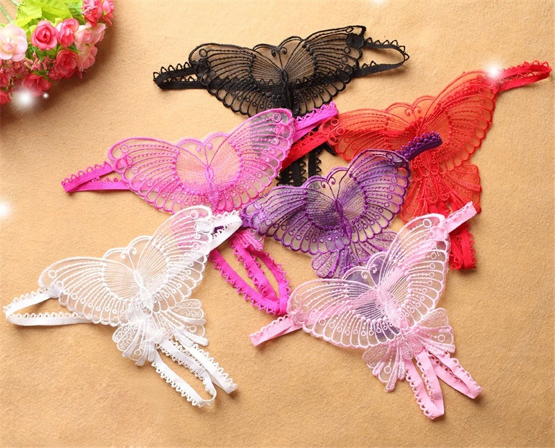 Женские сексуальные экзотические трусики, кружевная вышивка бабочки...