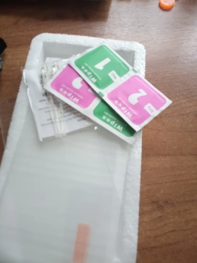 Ну, мне понадобилось 2 месяца, чтобы добраться сюда, но все прошло хорошо, он действительно приносит 2 слюды, очень хорошо Упакованные в одноразовую коробку, он приносит 2 упаковки с 2 съемными салфетками для очистки экрана, А также 2 лампочки жидкости для удаления грязи на экране мобильного телефона