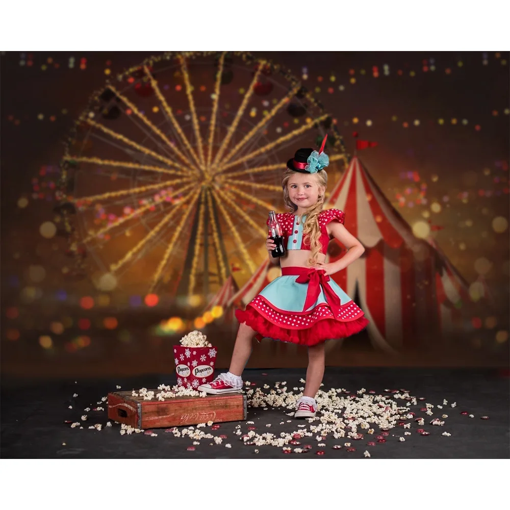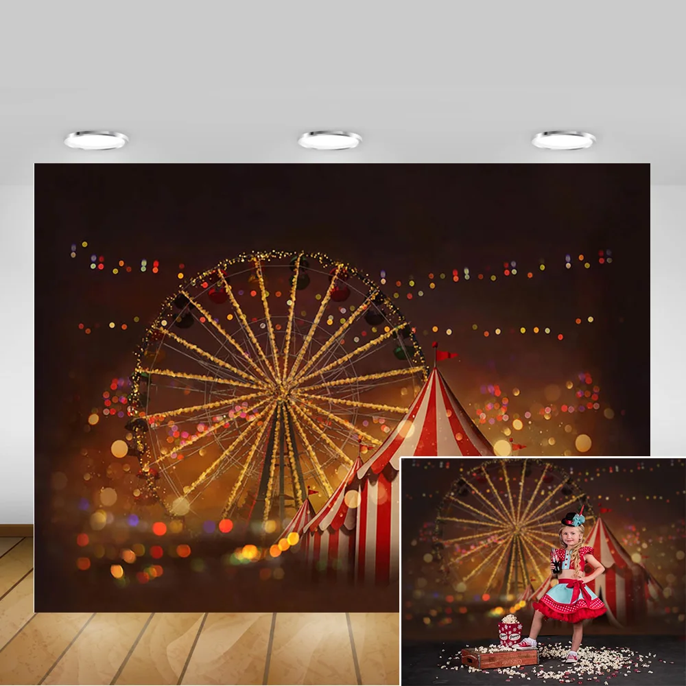 Bokeh цирковой карнавальный день рождения Вечерние Декорации обозрения колеса блестящие Дети Портрет фон фотография фотосессия