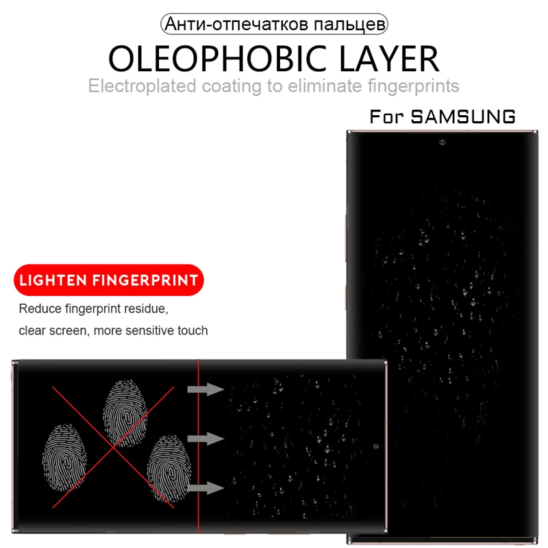 Особенности и характеристики: -Новая Гидрогелевая мягкая пленка обеспечивает высокую защиту вашего экрана. -Гидрофобное и олеофобное покрытие предотвращает ваш телефон от пятен, таких как масло, отпечатки пальцев и т. Д. -Сверхтонкий и высокой прозрачности дизайн гарантирует качество просмотра HD. -Высокая чувствительность и отклик как у оригинального экрана -Царапины на экране естественным образом восстановятся, чем тонче, тем быстрее -Значительно увеличить экран прочный, не нужно беспокоиться о том, что экран хрупкий для ежедневного использования -Гидрогелевая мягкая пленка является самой подходящей защитной пленкой на рынке для изогнутых экранов. Руководство по установке: Мы предоставим вам видео, чтобы объяснить установку, новая Гидрогелевая мягкая пленка не требует никаких вспомогательных инструментов, более легкий процесс установки Список товаров: 1 x новая Гидрогелевая мягкая пленка для Samsung 1 Набор для чистки 1 специальный скребок 1 x пленка для объектива камеры