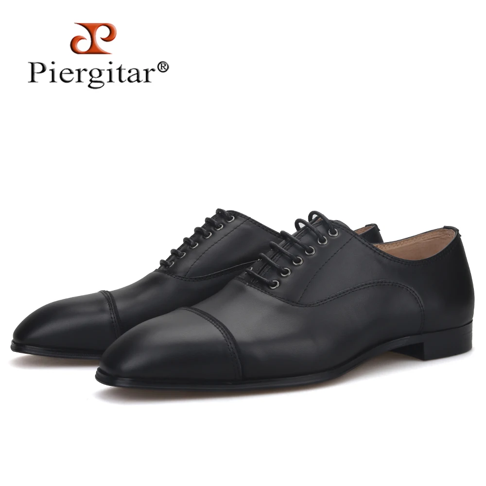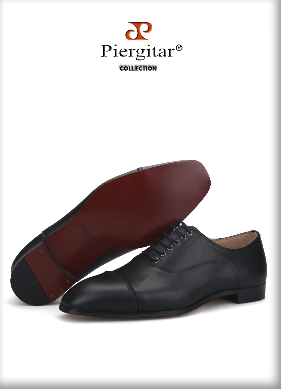 Piergitar мужские черные кожаные туфли, ручной работы, для свадьбы и банкета, с красной подошвой, на шнуровке, Дерби, 2019