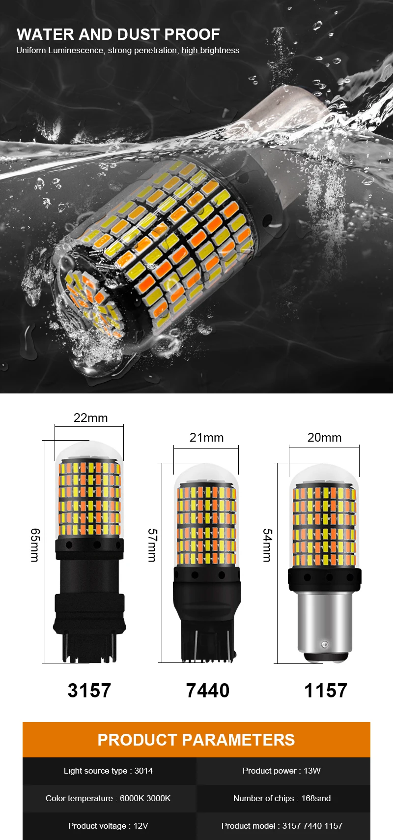 Сигнальная лампа P21w Led 7443 3157 лампа 168smd Canbus стоп-светильник 1157 Led Bay15d P215w белый янтарь двухцветный свет 12 В
