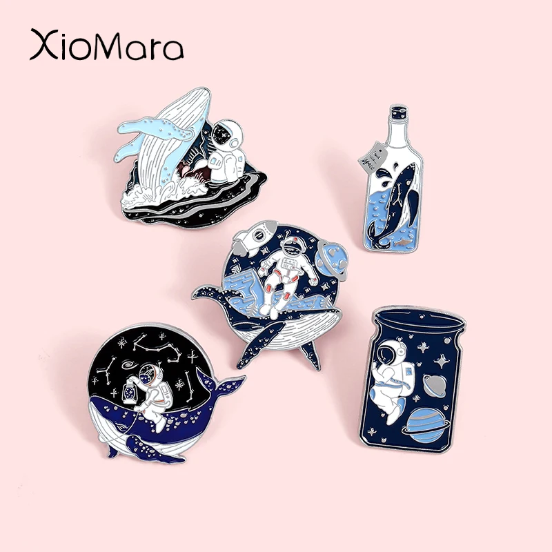 Эмалированные заколки для путешествий с фантастическим Китом, модные заколки для астронавтов, значки для лацканов, оптовая продажа, милая деталь для друзей
