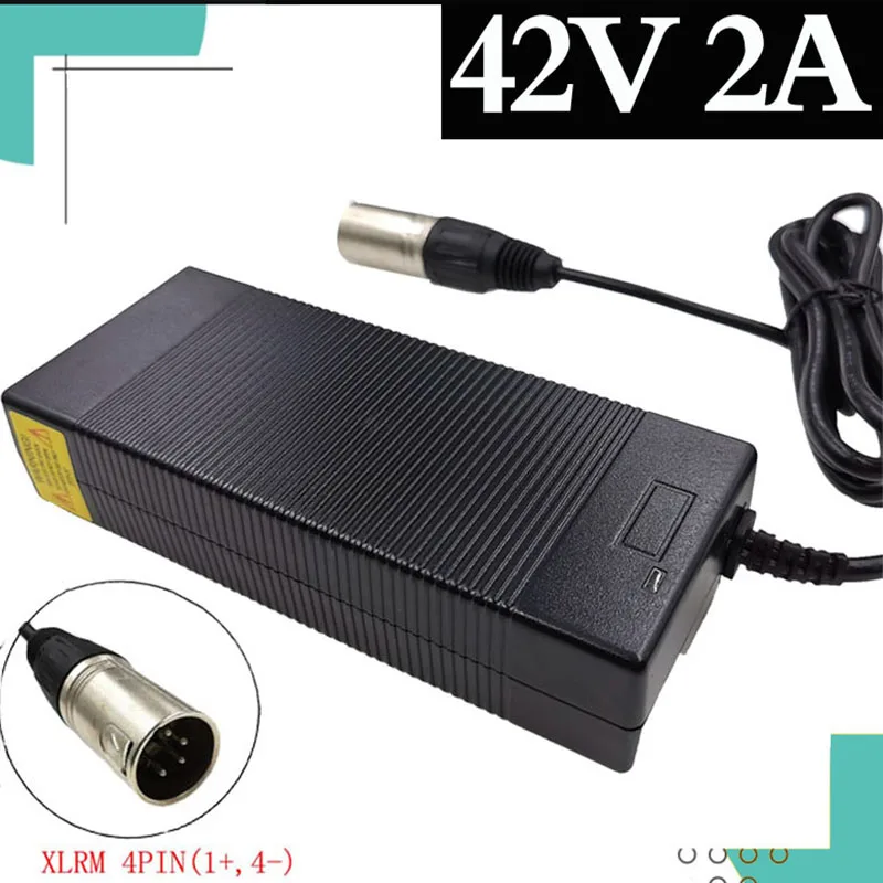 Зарядное устройство на выходе 36 В, 42 в, 2 А, 4-контактный коннектор XLRM для литиевых аккумуляторов 36 В, 10S для электровелосипеда