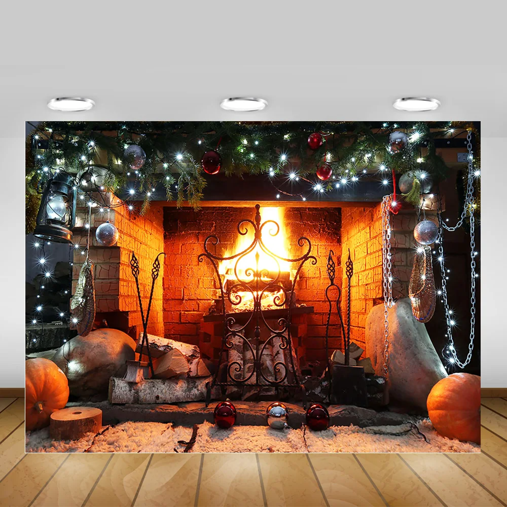 Фон для фотосъемки с изображением камина, зимнего Рождества вечерние, декорации, кирпичная стена, дерево камин, носок, фотосессия