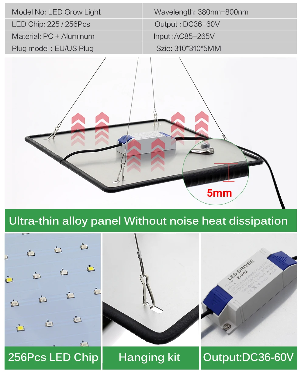 Светодиодная панель полного спектра для выращивания растений, комнатная фитолампа, доска для цветов, теплица, палатка для выращивания, вилка стандарта ЕССША
