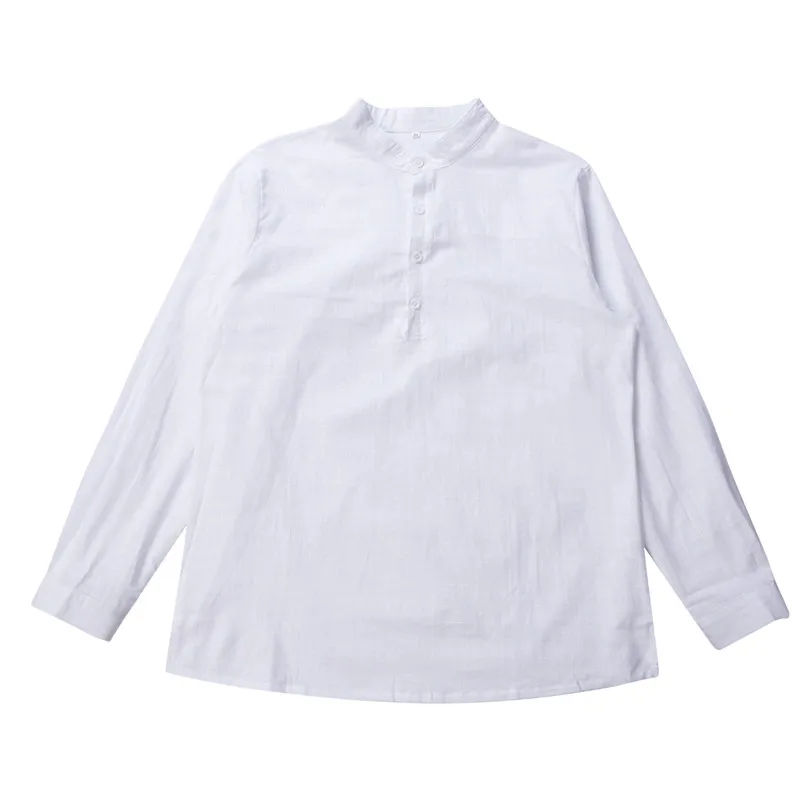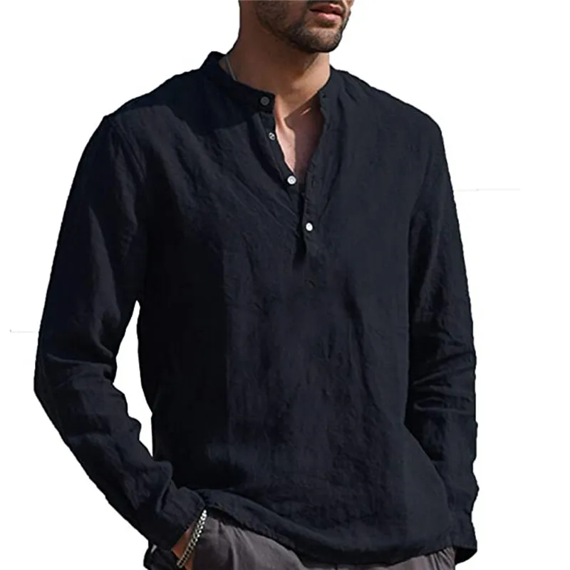 Men s Cotton linen Shirts Solid Color Stand Collar Long Sleeve Shirt Fall Spring Male Men s Casual Blouse
