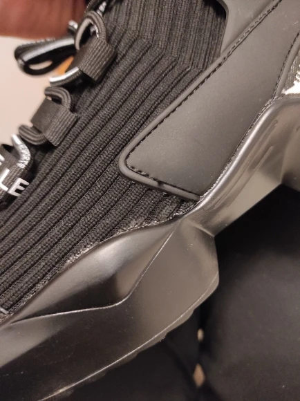 Товар не соответствует тому, что на фото. С задней части эта блямба не такая, как на фото, она очень сильно отличается. Ибо, на фото она выделяется, а в жизни она практически влитая. Отличаются надписи, которые по-бокам. Так же эта блямба некачественная, на фото продавца она намного красивее и опрятнее выглядит. На кроссовках есть засохший клей и видны швы, когда на фотографиях продавца всё нормально.