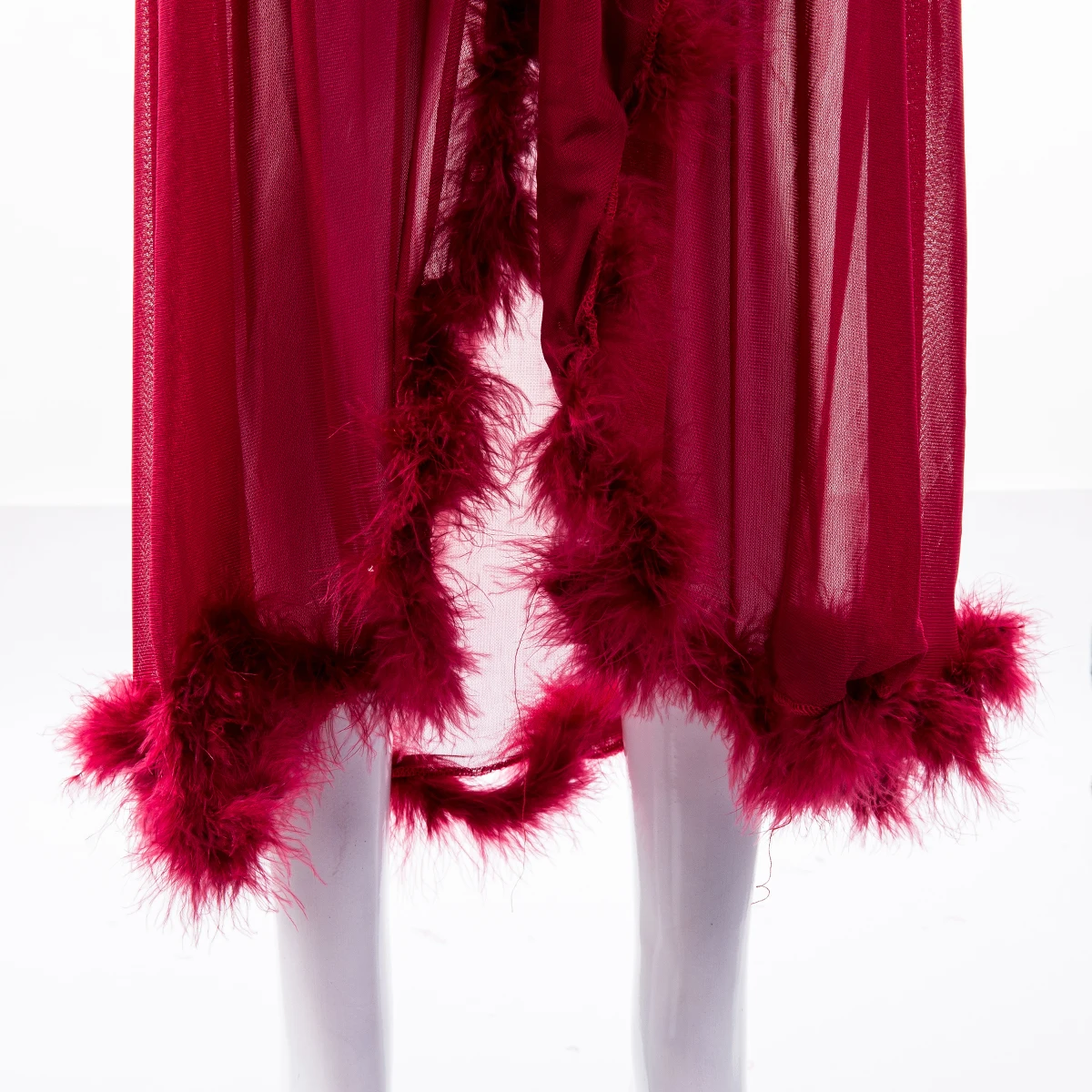 Пикантное женское нижнее белье, кружевное кимоно, ночная рубашка с комбинация с бахромой перьями, элегантная домашняя одежда для сна, 5 цветов