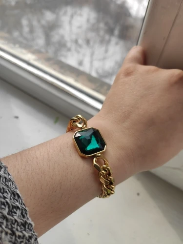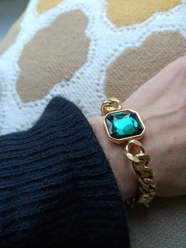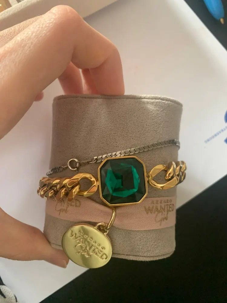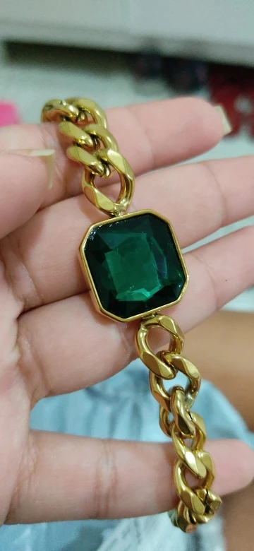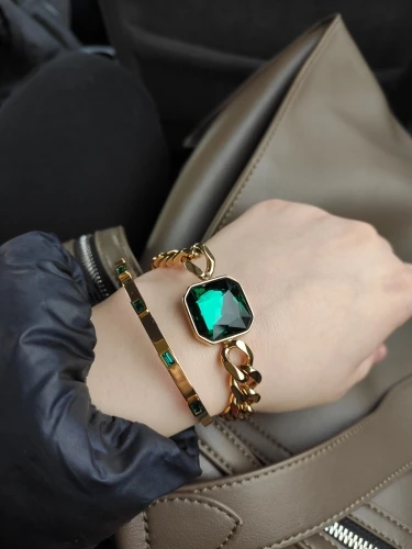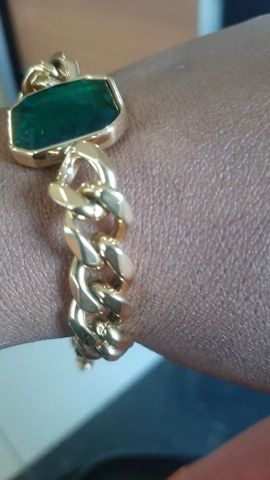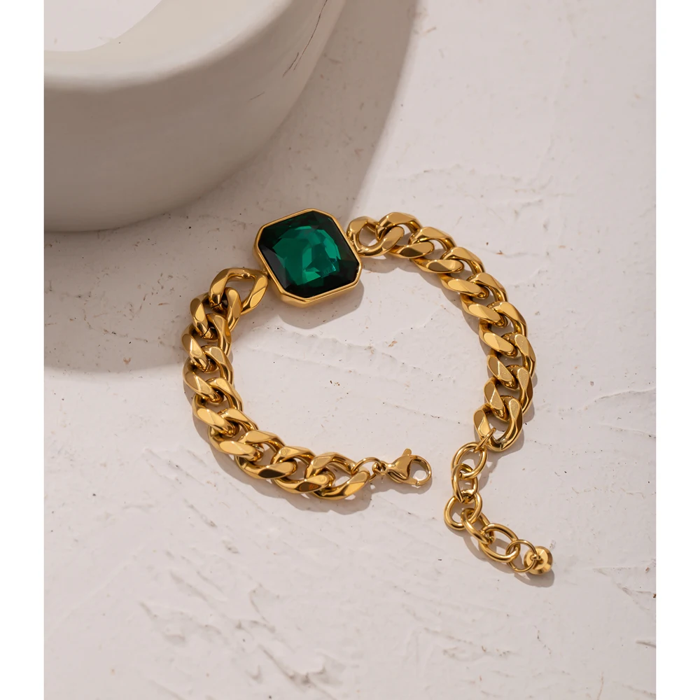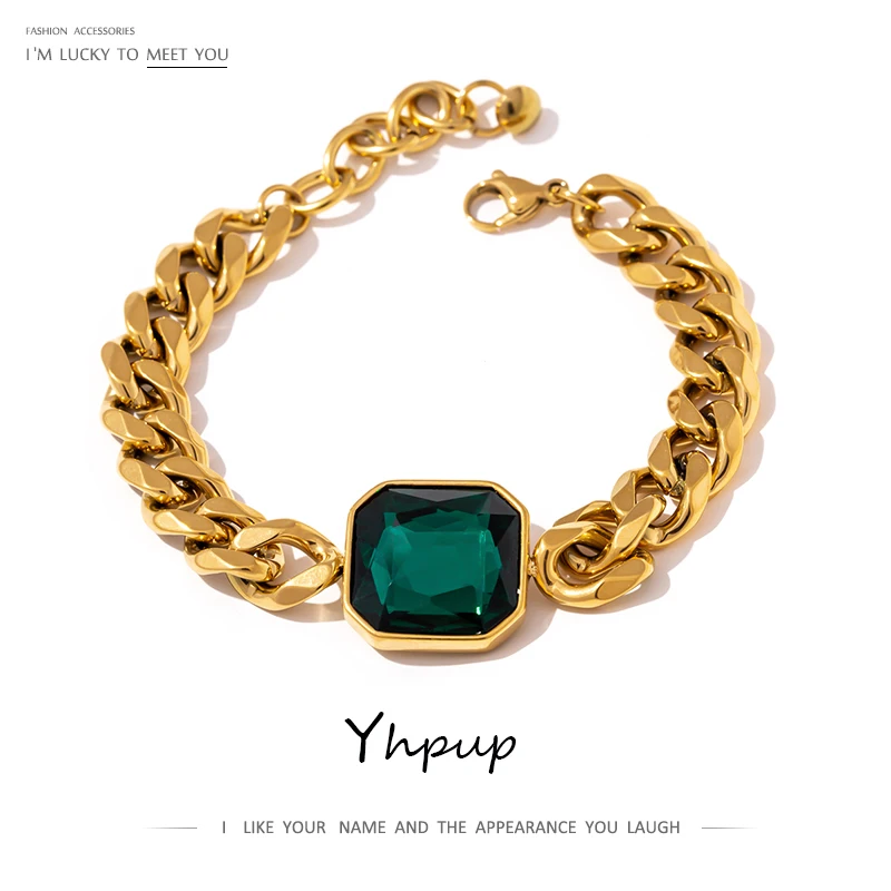 Золотые браслеты Yhpup из нержавеющей стали с зелеными кристаллами для женщин, модные толстые браслеты в стиле хип-хоп, панк с покрытием 18 К, Новинка