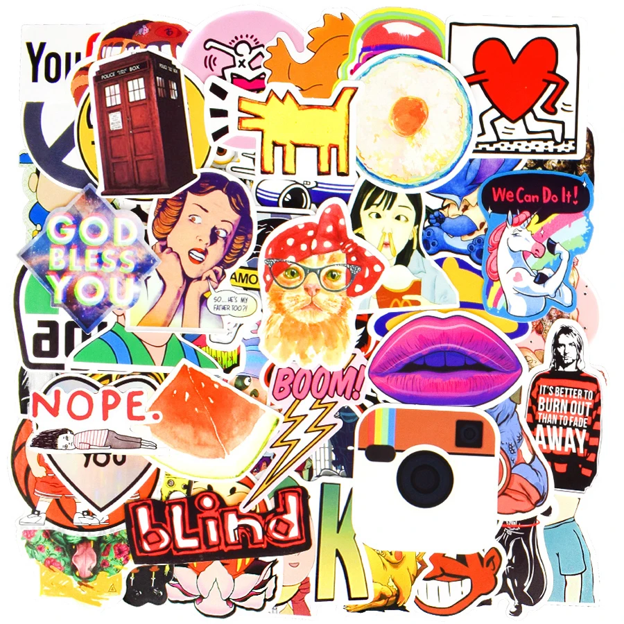 50 шт., наклейки из ПВХ для скейтборда, ноутбука, чемодана, велосипеда